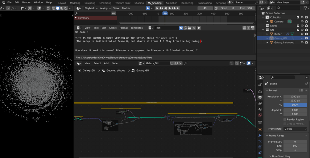 - Since it is a concept demonstration, it is kept as simple as possible. The GeoNodes trees are kept clean for easier readability and have detailed explanations. Everything is built from the base. The point of these setups is to provide a base core of the concept, node from node, instead of contracting all into node groups with exposed settings, which makes everything harder to read and dissect.